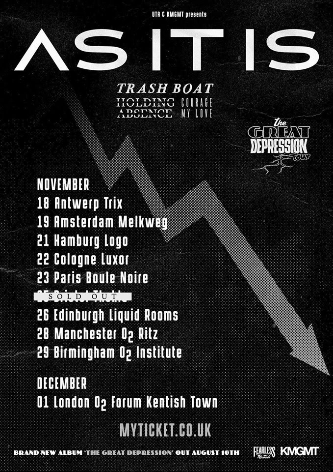 HOLDING ABSENCE are currently on the road as part of the Great Depression tour with AS IT IS,TRASH BOAT, and COURAGE MY LOVE.