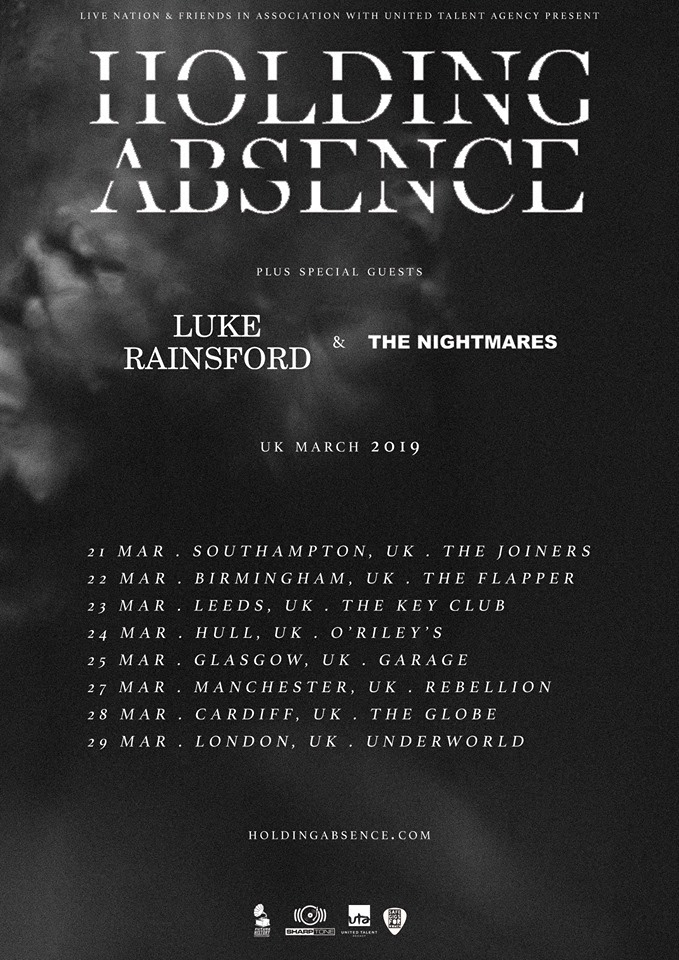 Welsh post hardcore quintet HOLDING ABSENCE have today confirmed that THE NIGHTMARES will be replacing CAPSIZE as support on their upcoming March UK tour. The band have also announced a partnership with SAFE GIGS FOR WOMEN who will be present at all shows to offer support and education on the importance of making the live music experience a safe and inclusive environment.