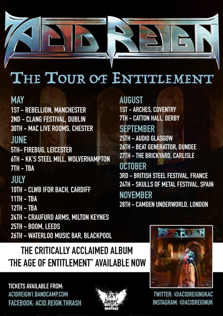 ACID REIGN have announced a load of dates throughout 2020 under the Tour Of Entitlement banner.